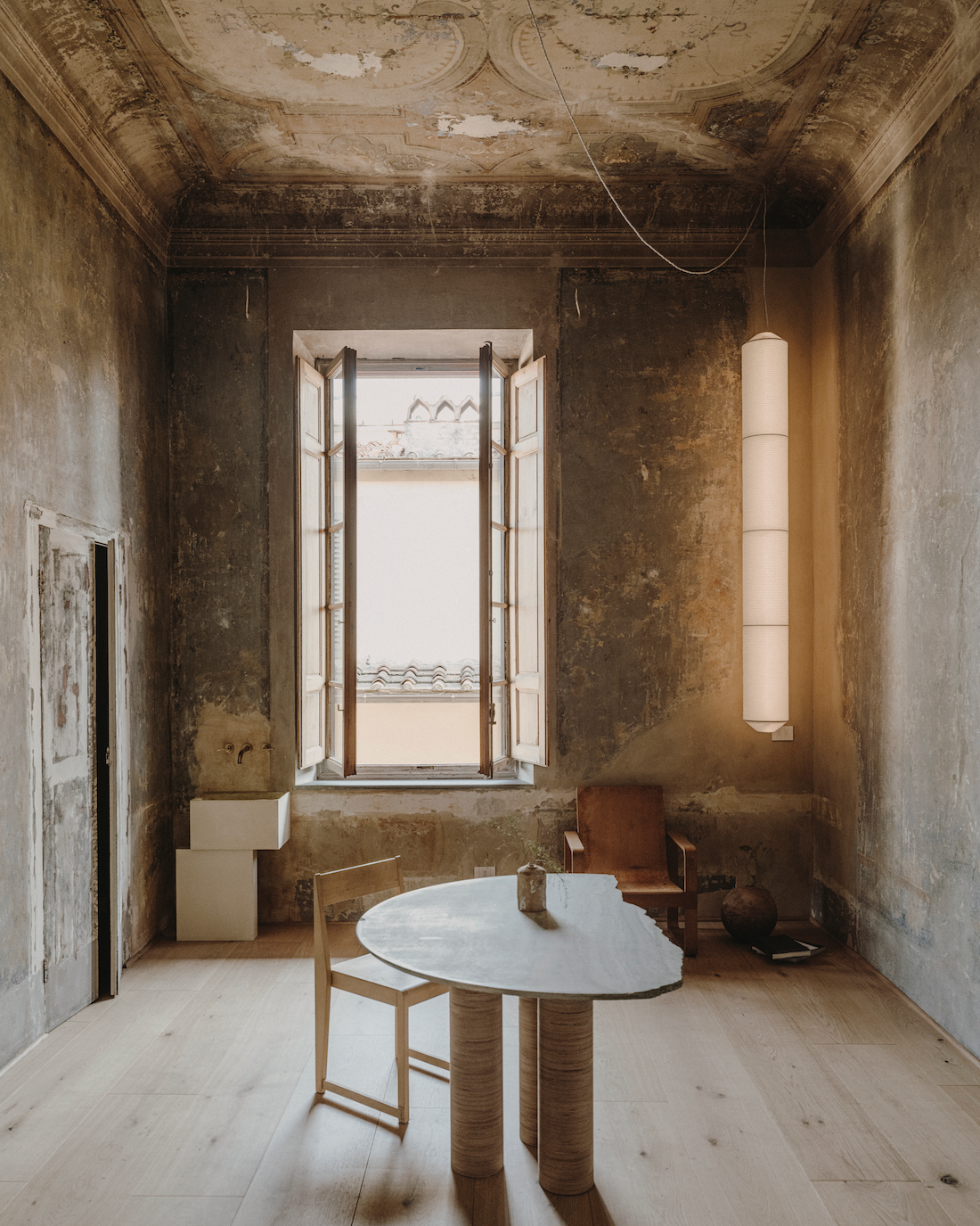Tucked inside Palazzo Galli Tassi, Numeroventi feels more like an artist’s atelier than a traditional b&b. Soaring ceilings, stone staircases, and centuries-old frescoes mingle with minimalist furniture by local and international designers. Each space tells a story of quiet reinvention: rooms stripped back to reveal their raw beauty, softened by linen drapes, warm light, and hand-crafted details. The design ethos is one of stillness and honesty: Florence’s grandeur distilled into something pure and modern.